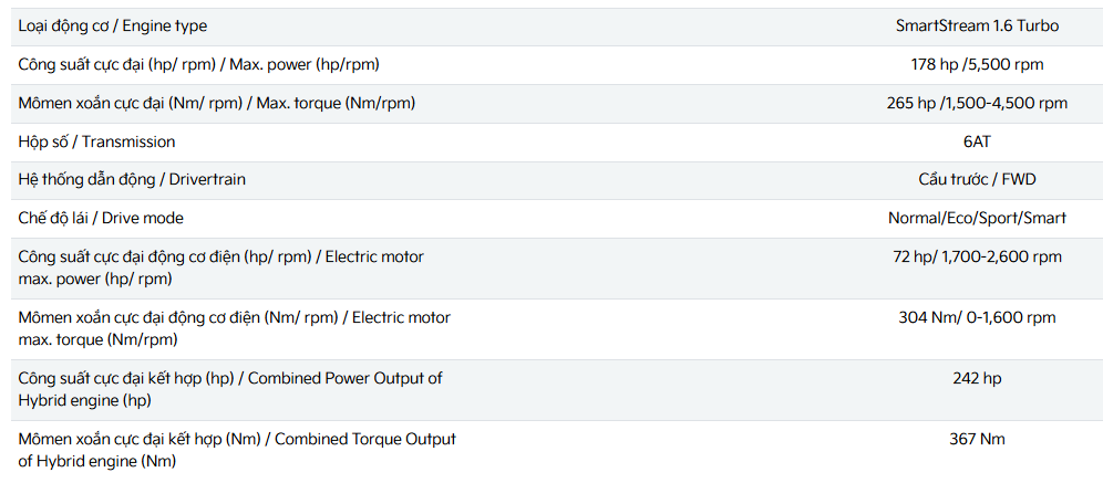 - Trường hợp duy trì tốc độ trung bình đến cao: hệ thống sẽ sử dụng động cơ xăng SmartStream 1.6 Turbo làm nguồn năng lượng chính mang đến khả năng vận hành mạnh mẽ và tối ưu quá trình tiêu hao nhiên liệu.